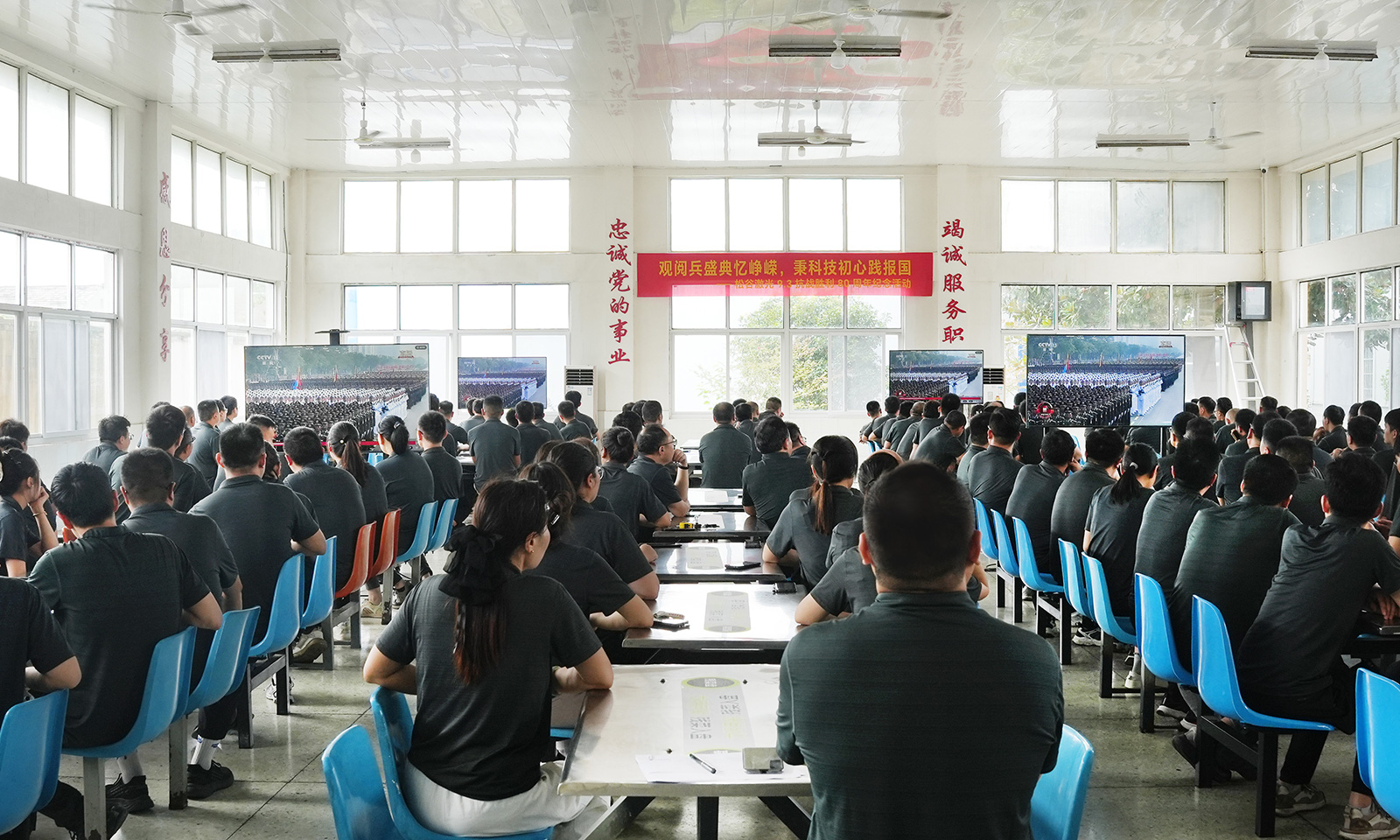 徐州松谷激光产业园的全体员工齐聚在会议室、生产车间、办公室、餐厅等场地,庄重端坐,神情专注,共同观看大会全程直播,认真聆听和学习大会讲话精神,向伟大胜利致敬,汲取奋发前行的强大力量。